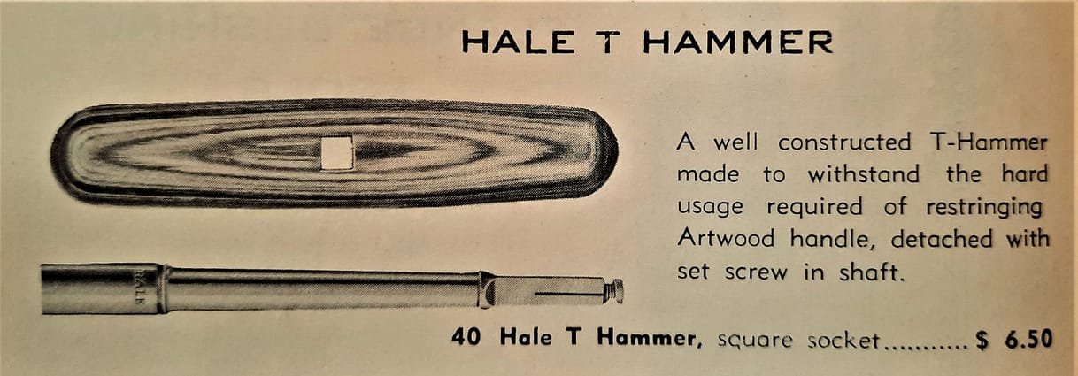In 1957, Hale’s T Hammer was still offered in “Artwood,” but the extension and stationary hammers had no specification as to what they were made of. Probably the first year for Polypenco Nylon.