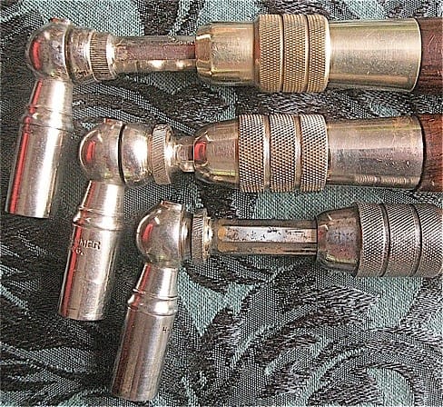 “Cup-Joint” model was replaced with a 1/8″ tapered pipe thread on the shaft, which was phased in, c. 1925-1928. This idea combined the “cup joint” and “heavy duty” concept into one model. But the unthreaded ‘heavy duty” model remained in production until about 1940. This particular threaded model with octagonal shaft was offered until at least 1940, at which time the shaft was change to round with a fixing slot.