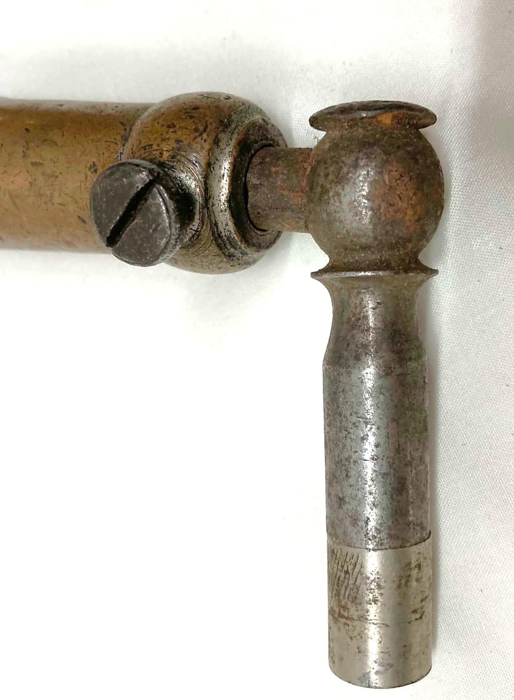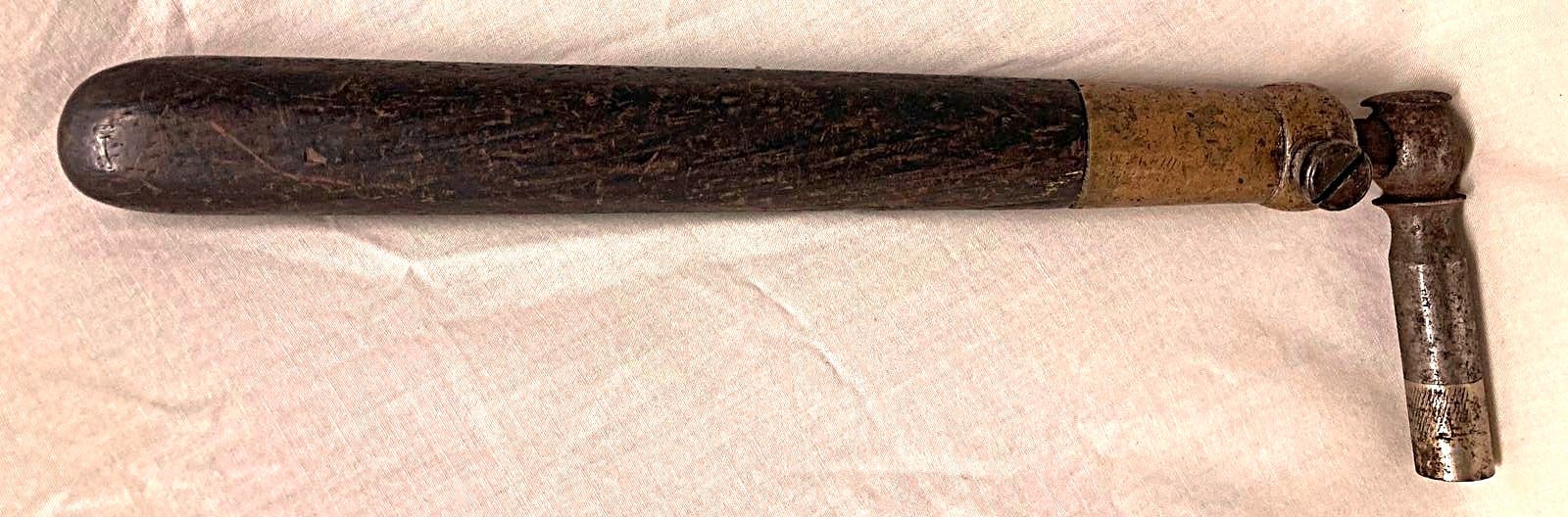 Pre-patent Hale Extension Tuning Hammer. “Pat. Apl. For.” Close up of hardware with single set screw, rather than collet.