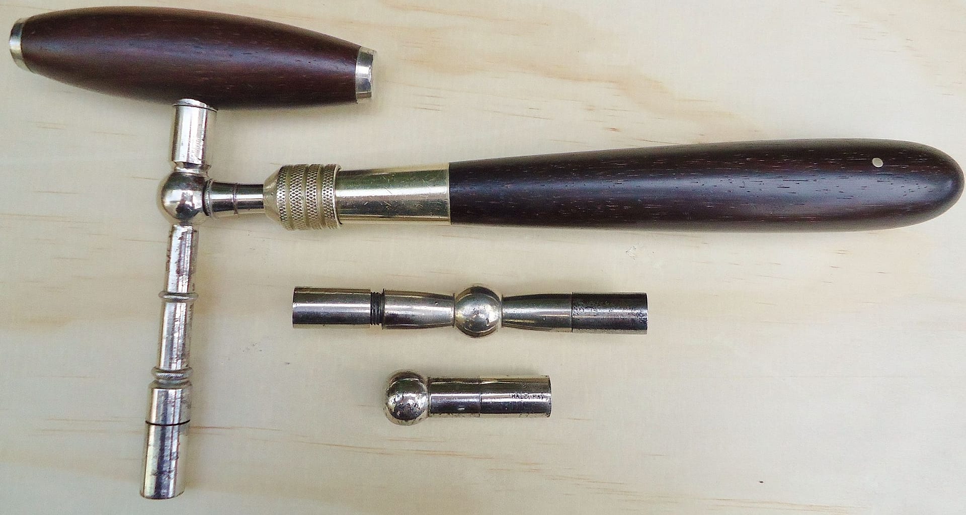 Hale hammer with round shaft and solid rosewood handle. This type was offered in small numbers during WWll 1940-45.