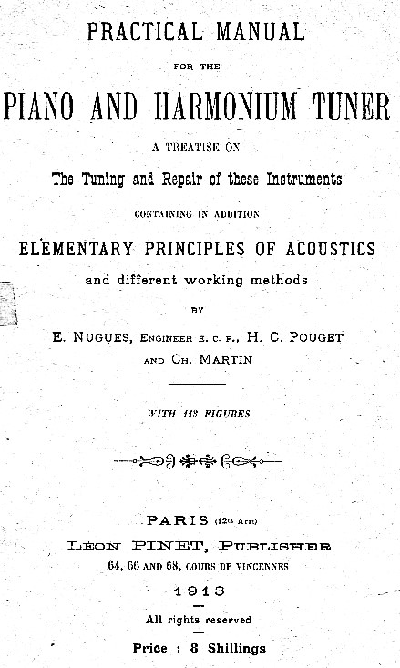 The Practical Manual for the Piano and Harmonium Tuner was originally published in French, in 1902. Pinet published this English edition in 1913.