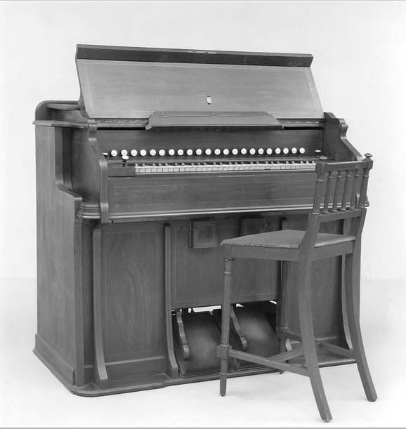 French Harmonium (after 1886), made by Victor (1815-1890) and Auguste Mustel, Parisian Harmonium makers. Photo from Metropolitan Museum, New York City. Photo in public domain.