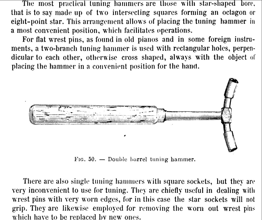 Pinet type tuning hammer. From “The Practical Manual for the Piano and Harmonium Tuner,” Nugues, Pouget, and Martin.