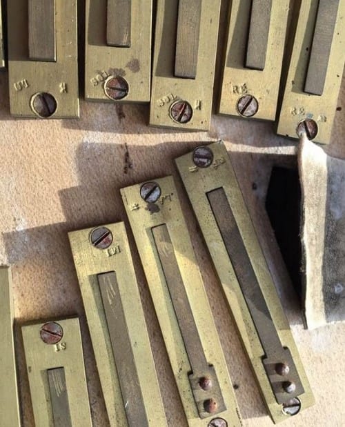 The other unique aspect of so many French tools, was the use of Cormier wood, sometimes called “Service wood.” The Cormier tree grows almost exclusively in Southern Continental Europe. Cormier wood has very fine grain; freshly cut, it has a color towards orange, and as the cormier ages, it darkens to a warm brown tone. Cormier is a dense wood. Cormier wood was sometimes used for the jacks in 18th century French and English harpsichords, and also for harpsichord bridges.