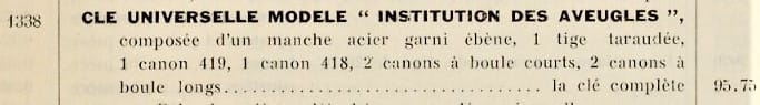 “Institute for the Blind” Tuning hammer. From Pinet’s c. 1914 price list. “Universal Tuning Hammer Model “Institute for the Blind” consisting of a