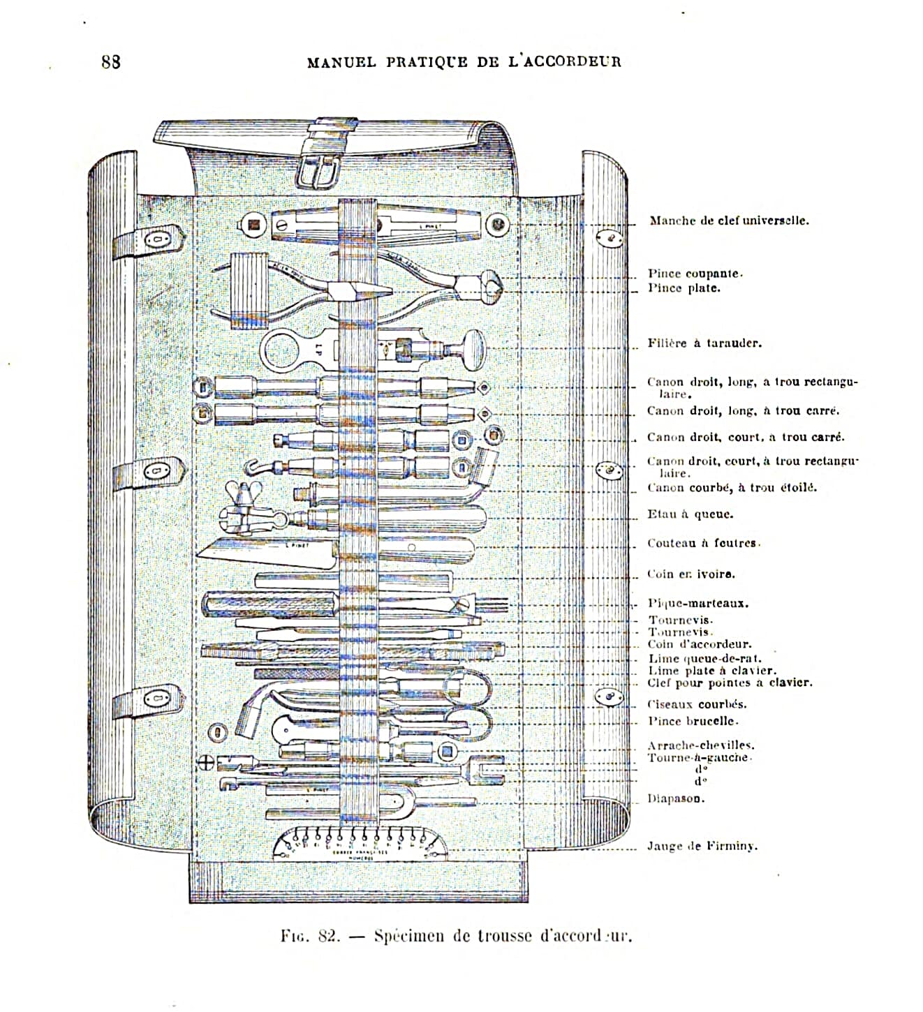 Pinet’s range of tuning tools. From “The Practical Manual for the Piano and Harmonium Tuner,” by Nugues, Pouget, and Martin.