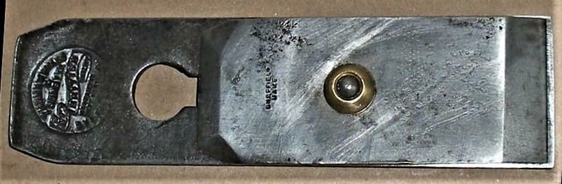 This Thomas Wales double plane iron shows the arrangement that has been standard for bevel down planes in England and North America for the last 200 years. A machine screw with cheese head under the cutting iron, goes up through the slot and into the brass bolster of the cap iron (England), or chip breaker (U.S.A.). The wooden bed of the plane body would be mortised out to provide clearance for the cheesehead screw.