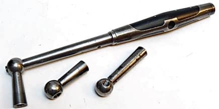 “Pleyel” pattern Pinet tuning hammer, in lever mode. “Pleyel” pattern tuning hammer, composed of three [tuning hammer] heads with ball [shaped joint], mounted on a rod, and a socket handle