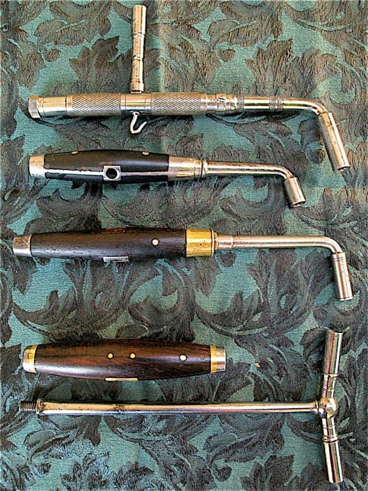 Pinet made the heaviest constructed stringing crank that I have ever seen. For winding coils around tuning pins