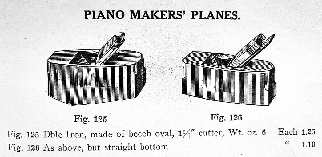 Hammacher Schlemmer pianomaker’s catalogue, 1891. Prices remained the same as the 1885 catalogue, and the Popping rabbet/shoulder planes were interspersed with the Erlandsen rabbets.