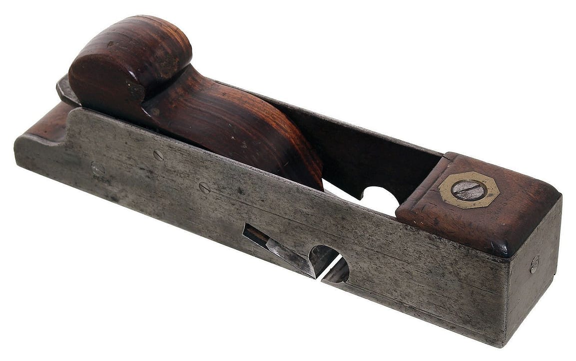 Mitre/Rabbet plane. Photo from Ebay, December 2017. New York style design, with adjustable mouth. English badger/rabbet/mitre planes exist, but this example may be a one-off.
