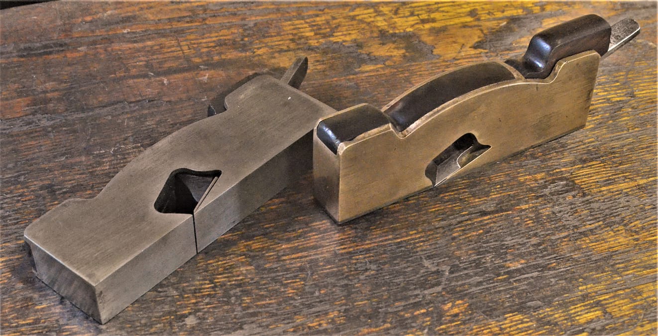 . Popping bullnose planes, same casting pattern, but slightly different as a result of hand finishing. Gunmetal example is much heavier because the blade is bedded on solid bronze, which extends all the way to the sole. Popping made a fair amount of his bullnose planes, certainly more than his mitre planes, but nowhere near as many as his shoulder planes.