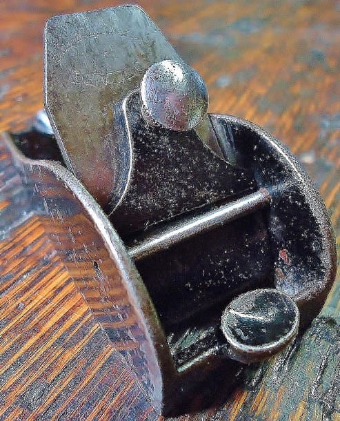Popping mitre plane with Stanley 113 lever cap screw, circa 1873-1875. On Popping mitre planes, the throat was easier to adjust than either Brandt’s, Thorested’s, or Erlandsen’s mitre planes