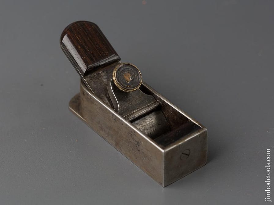 A FANCY CABINET MAKERS MITRE PLANE by Henry Buchhop, New York, New York. This plane is nicely appointed with a brass locking screw for the cap and a rounded brass washer to secure the throat adjustment. It retains its full cutting iron by Shepherd Brothers and and is in excellent collector quality condition. Henry Buchhop was listed as a cabinetmaker in the 1867 New York City Directory, living at 133 Sixth Avenue. In 1872, he was listed at 147 Avenue A. In 1878 he had moved to 458 W. 50th Street, where he worked as a cabinetmaker. He worked as a cabinetmaker in New York City throughout his life. The plane is marked with the designation “H. Buchhop” on the bridge. Its unique configuration suggests that Buchhop may have made it himself.” Martin Donelley auctions, April 2016.