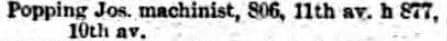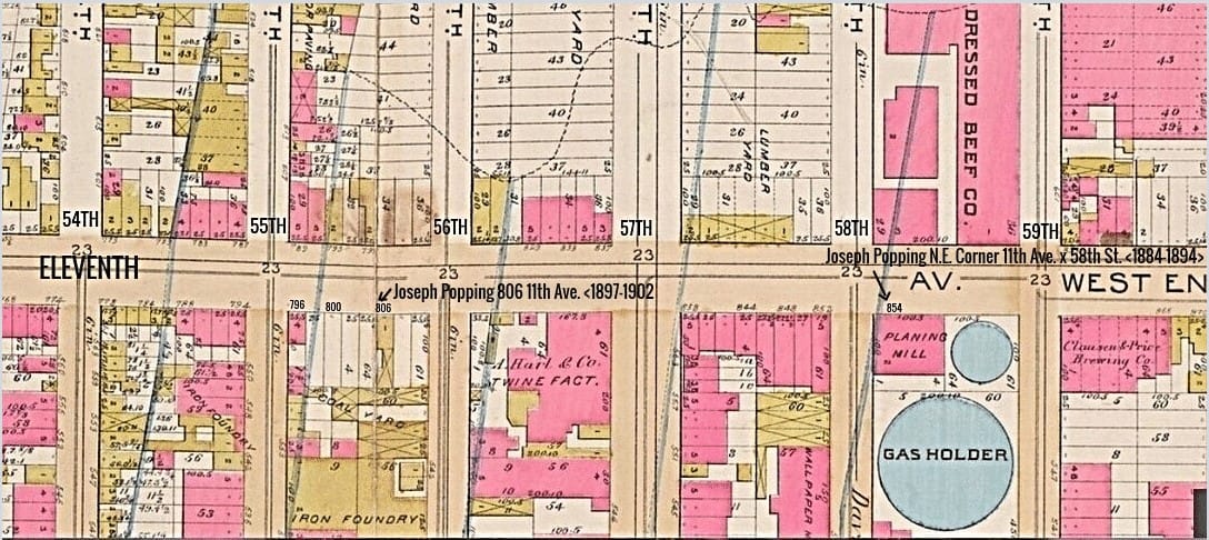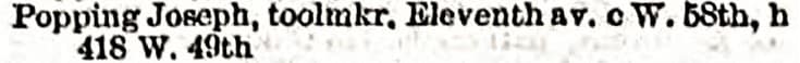 I did not find a Popping Machine shop listing in the 1882 Trow’s New York City Directory, so I would assume this is ‘our’ Joseph Popping.