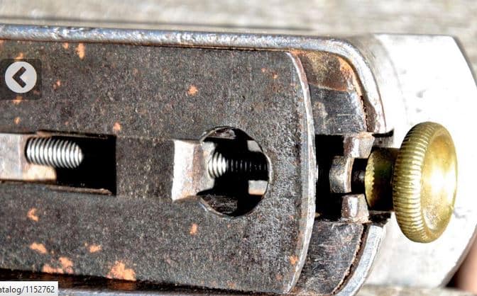 Poping mitre that sold an ebay in January 2017 for $1,375.00. Stanley provided lever cap screws for the earliest Popping mitres, roughly between 1873, Popping’s initial establishment in NYC, and 1875, when Bailey’s Victor lever cap screw became available.