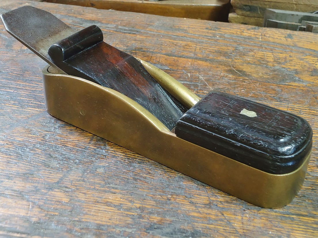 Stewart Spiers of Ayr, Scotland introduced the improved version of the box mitre plane in the 1850s; while rare, Spiers’ examples are the most seen, but a few ambitious craftsmen went out and made one-off examples for their own use. In April 2025, a gunmetal improved mitre sold in the David Stanley Auction in lot no. 913: it sold for £1,000, or ~$1,800 after exchange rate, commission, and estimated shipping to the U.S.