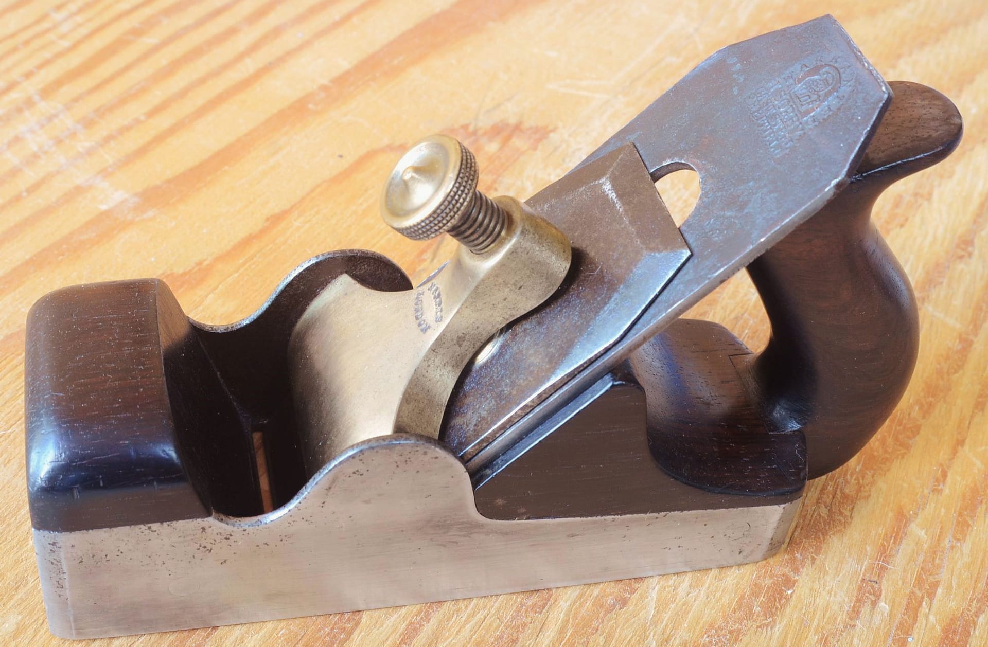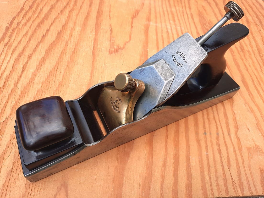 Norris A1 panel plane with 1922 patent adjuster. Design closely follows that of a Spiers no. 1 panel plane, but with an added lateral and depth blade adjusting mechanism.