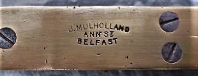 James Mulholland was born in Belfast, on 30 April, 1864 to John Mulholland (1844-1919) and Ellen McCabe (1843-1894). James married Agnes Jane Rea (1868-1944) on 2 April, 1888 at Fort William Pa Presbyterian Church, in Belfast. Irish Chariot planes first appeared in the 1890s, and they continued to be made into the 1930s. Were they actually developed in Ireland? If James Mulholland made Irish chariots in the 1890s, then there’s a good chance that it was the case. A James Mulholland, “Ironmonger,” was listed in the 1890 and 1900 P.O. Directories for Belfast. Throughout the 1890s, there were various listings for a James Mulholland as a joiner, carpenter, or smith. Perhaps these entries were of an older family relative of ‘our’ James Mulholland, whose father, John Mulholland, was born in 1844, and died in 1919. James Mulholland was located at 61 Ann Street in Belfast from 1907 to 1932, and this address was stamped on some of his Irish chariot planes. Like Preston, Mulholland’s version was also orange/red, with a plain toe, like Preston version 1, but with swept sides like Preston version 2. What is clear, is that the Irish chariot pattern was not a London design. All of the known makers were north of London.