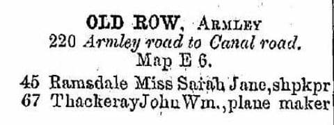 John William Thackeray wore three hats: joiner, planemaker, and undertaker. 1908 Leeds P.O. Directory.