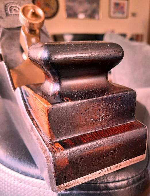 Mathieson was a major tool manufacturing business in Glasgow, Scotland, with production and overall business philosophy set up for large scale operations. In the mid 19th century, Mathieson was a growing maker of wooden planes, and in the 1860s, began to make their own cast iron blades and other edge tools. At this early point, customer demand for cabinetmakers’ steel infill planes was limited, and did not warrant establishing their own in-house boutique production line. So Mathieson bought in planes from other manufacturers. From the mid to late 19th century, Mathieson bought in their metal planes from Stewart Spiers.