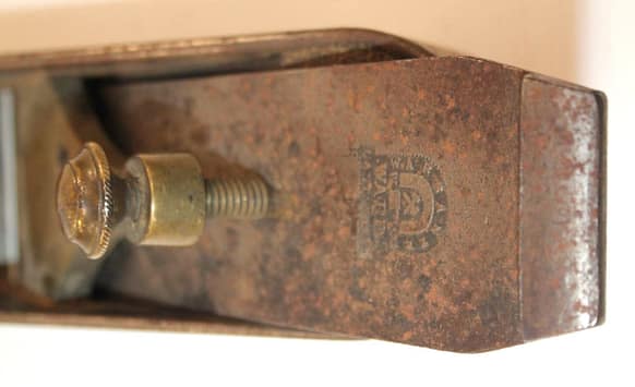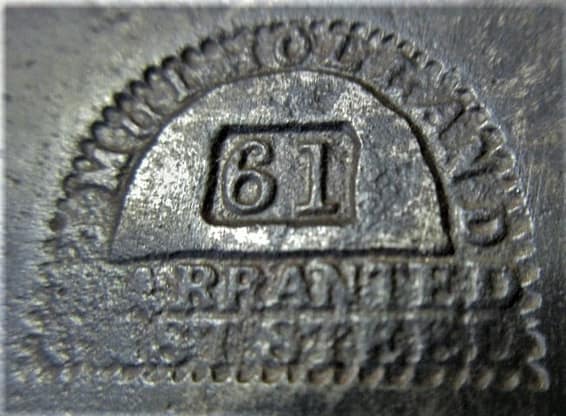 The 1858 first version of Bailey’s mitre plane did not include the ‘broomstick’ handle, and appeared very much like the example pictured above, in the 1867 A.J. Wilkinson Hardware Catalogue, with Bailey’s cam- lock lever cap, patented 31 August, 1858. Bailey’s mitre included a depth adjustment for the iron based on Levi Sanford’s patent of 26 November, 1844. Version 1 and 2 used thick tapered cutting irons, such those by William Ash and Moulson Brothers in Sheffield, England. The adjustable mouth on the no. 9 was not patented.