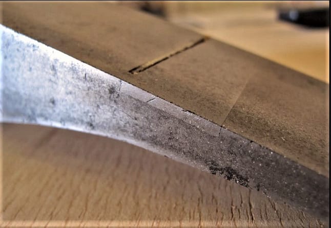 Below are four smoothing planes. Top row shows a Norris no. 3 parallel sided smoother with mahogany infills, and built in the 1930s. Next to it is an equivalent Spiers parallel smoother with mahogany infill, also made in the 1930s. Quality in the Norris shop during the 1930s exceeded that of the Spiers Paisley shop in the 1930s, but the Spiers is still a workable tool. Bottom row shows an unhandled Spiers coffin smoother circa 1870s and 1880s. Next to it is an early 20th century Norris parallel smoother, no. 3. Similarity of designs from these two makers exemplifies the great extent to which Thomas Norris ‘borrowed’ from Stewart Spiers for his entire product line-up (with the exception of some cast iron bench plane models). Craftsmen would sharpen several plane irons, in a single session, for each plane every day. By doing so, workers would not have to interrupt their work flow at inopportune moments, and would instead enable consistent optimal production. Because of that, all four smoothers have replacement irons and would be considered user planes rather than collector’s items.