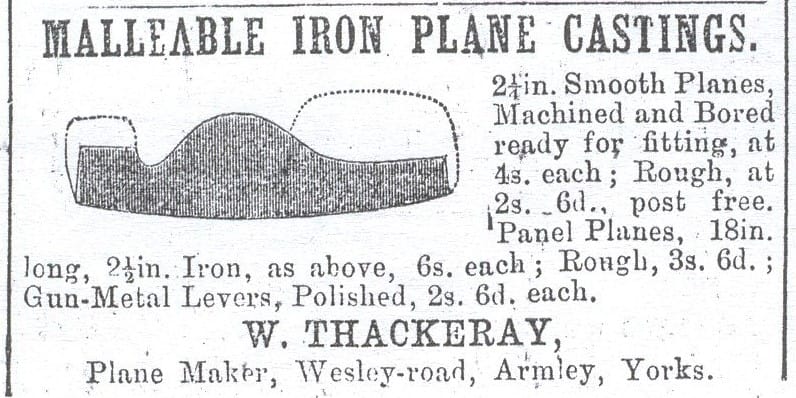John William Thackeray’s ad in the “Illustrated Journal for Mechanics,” volume 14, circa 1898. From the beginning of his planemaking career, John William Thackeray offered an a la carte menu for his customers.