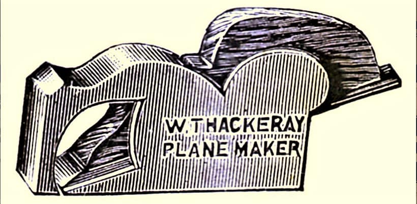 John William Thackeray was born 10 April, 1869 in Burnt Yates, Clint, Yorkshire, to Charles and Sarah Thackeray; Charles was a joiner and farmer in 1871. “The Ivy” improved mitre plane (Irish chariot) was Thackeray’s best known plane, and the only one that had this recognizable mark on the body. It was named for the Ivy Works, at 51 Old Row, Armley, Leeds, where the plane casting was finished off. Occasionally, Thackeray’s planes would be stamped with a large “T” on the body.