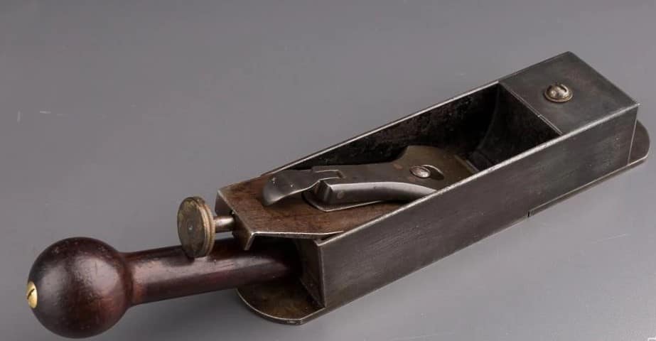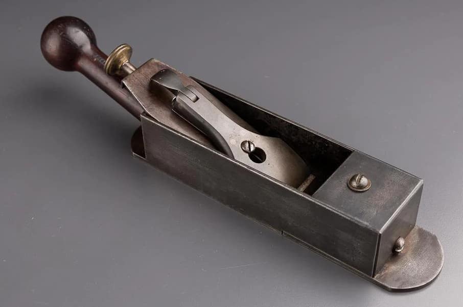 Irish/Scottish Chariot Plane. Formerly from collection of Max Ott. Photo from Donnelly Auctions, May, 2021. This Irish/Scottish Chariot plane, also in gunmetal and ebony, is very similar to the Chariot plane shown above. Max Ott, a noted London cabinetmaker and collector, thought enough of it to add one to his collection.