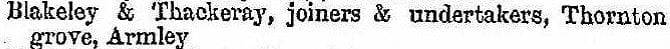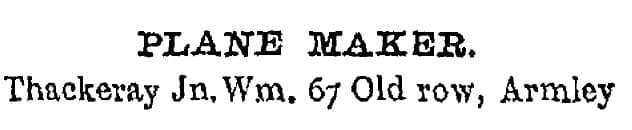John William Thackeray wore three hats: joiner, planemaker, and undertaker. 1908 Leeds P.O. Directory.