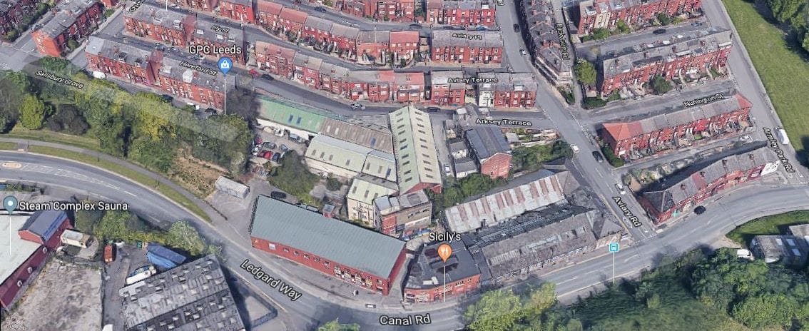 Photo from corner of Canal Road and Old Row. The Asbestos factory was directly behind Old Row, now Ledgard Way. Photo from leodis.net