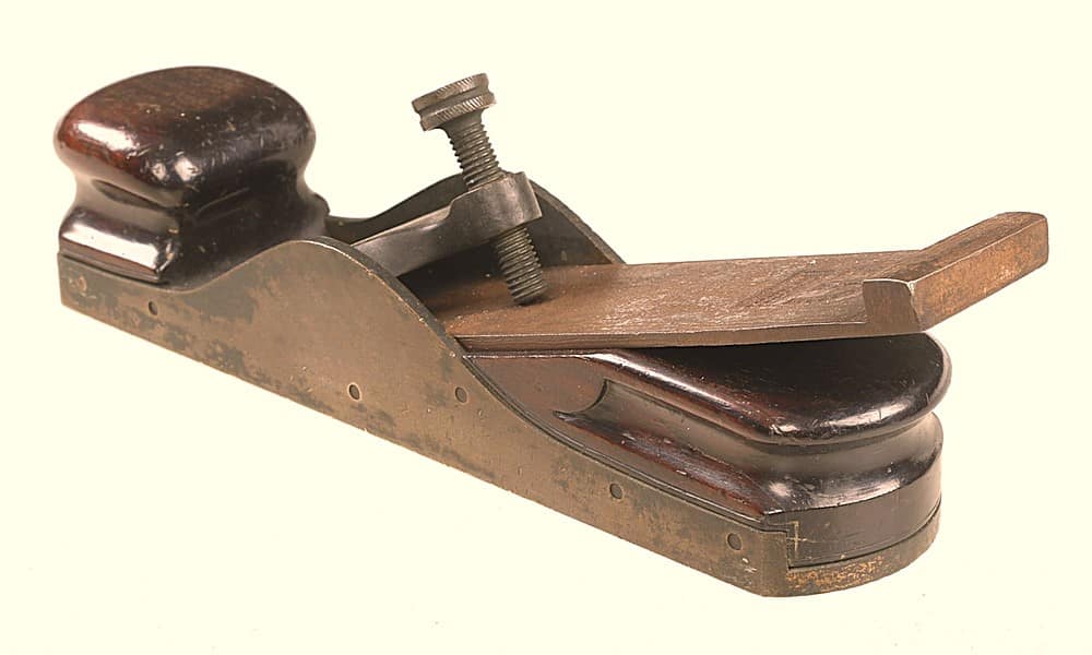 Scott mitre plane with L. & I. J. White iron, 8″ long. Similar to the plane shown above, but with some differences in the lines of the casting. Photo from Martin Donnelly Auctions, c. 2002.