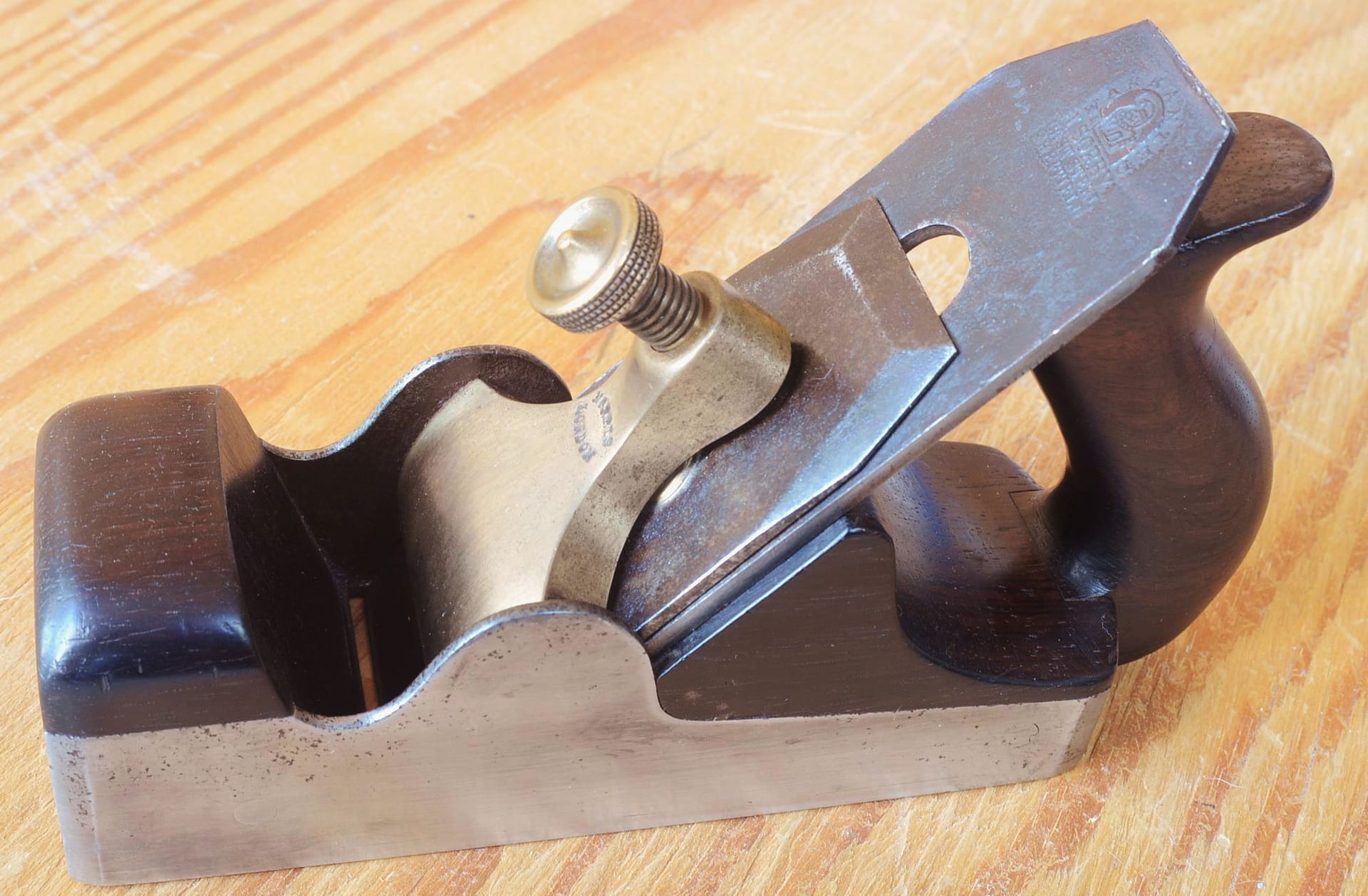 Norris A1 panel plane with 1922 patent adjuster. Design closely follows that of a Spiers no. 1 panel plane, but with an added lateral and depth blade adjusting mechanism.