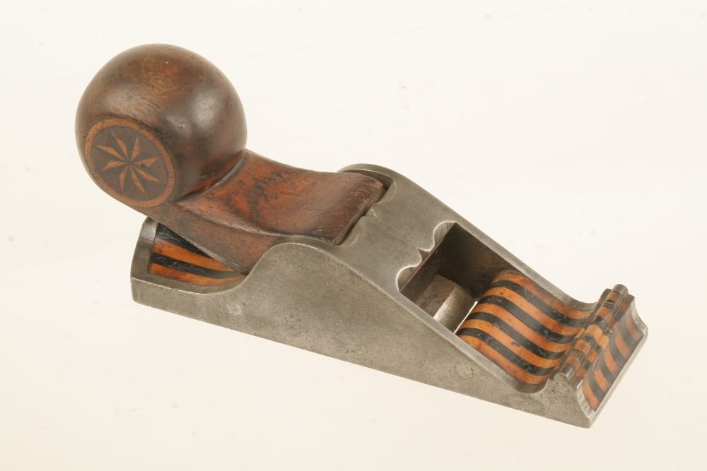 Split scroll and rounded nib on 19th century mitre plane. Photo from Reeman Dansie Auctions, U.K., in 2018.