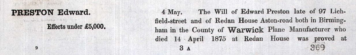 This will index listing put Edward Preston Sr.’s (b. 1798) death on 14 April 1875. Most publications have his death in 1883.