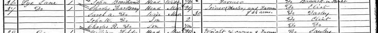 Charles Thackeray “Joiner (Master), and Farmer, 46 1/2 acres.”