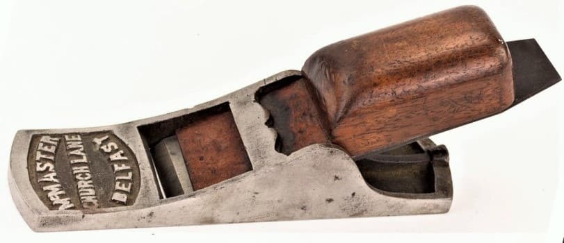 James Mulholland was born in Belfast, on 30 April, 1864 to John Mulholland (1844-1919) and Ellen McCabe (1843-1894). James married Agnes Jane Rea (1868-1944) on 2 April, 1888 at Fort William Pa Presbyterian Church, in Belfast. Irish Chariot planes first appeared in the 1890s, and they continued to be made into the 1930s. Were they actually developed in Ireland? If James Mulholland made Irish chariots in the 1890s, then there’s a good chance that it was the case. A James Mulholland, “Ironmonger,” was listed in the 1890 and 1900 P.O. Directories for Belfast. Throughout the 1890s, there were various listings for a James Mulholland as a joiner, carpenter, or smith. Perhaps these entries were of an older family relative of ‘our’ James Mulholland, whose father, John Mulholland, was born in 1844, and died in 1919. James Mulholland was located at 61 Ann Street in Belfast from 1907 to 1932, and this address was stamped on some of his Irish chariot planes. Like Preston, Mulholland’s version was also orange/red, with a plain toe, like Preston version 1, but with swept sides like Preston version 2. What is clear, is that the Irish chariot pattern was not a London design. All of the known makers were north of London.