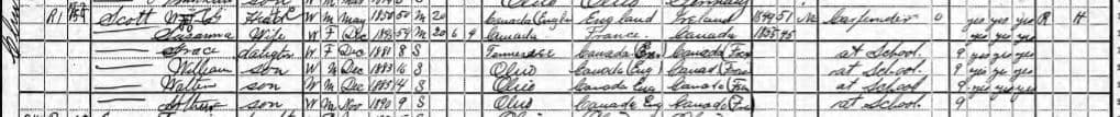 William Scott Sr., Jr., Eliza, and family, 415 S. Tennessee St., Indianapolis, Indiana. 1870 U.S. Census. In the 1870 U.S. Census, William Scott Sr. had 8 children, not 7. In 1859, William Sr. and his family immigrated to the United States and moved to Indianapolis, Indiana. Promptly after arriving, William Sr. started carpentry work to support his large family. Notably, the Scott family owned their house in 1870, so William Sr. was quite successful as a Carpenter/Builder, obviously profiting handsomely from the rapid growth of Indianapolis at that time.