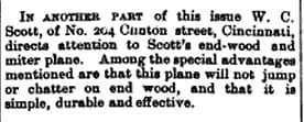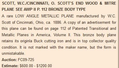 As recently as 1988, no known Scott mitre planes had been found and recognized. By 1992, Roger Smith included this plane in “Patented Transitions and Metallic Planes in America .