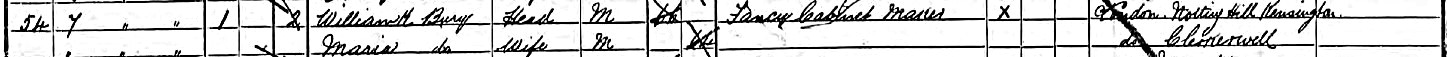 William Kingston Bury, “Fancy Cabinetmaker,” and wife Martha, living at 7 Austral Street, Southwark, London, in the 1891 U.K. census.