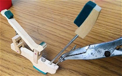 Plier position for illustration purposes only; lining up or straightening the bridal wires would be done at the base of the wire, near the wippen.
