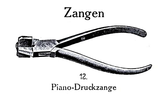 Parallel Piano pliers, meaning that jaws are parallel at the average width of a piano action part. From Otto Bergmann, Berlin Piano Tool Catalogue, c. 1927