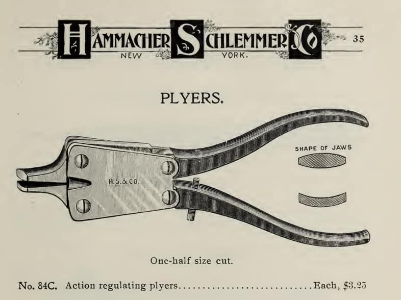 Hammacher Schlemmer Action Regulating Pliers, compound action, based on Utica Pliers. From H.S. 1903 Catalogue.
