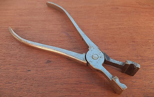 Early Key Easing pliers. English. An early type of key easing pliers, similar to an illustration in Seiver’s “Il Pianoforte…” 1868. Box-joint design.