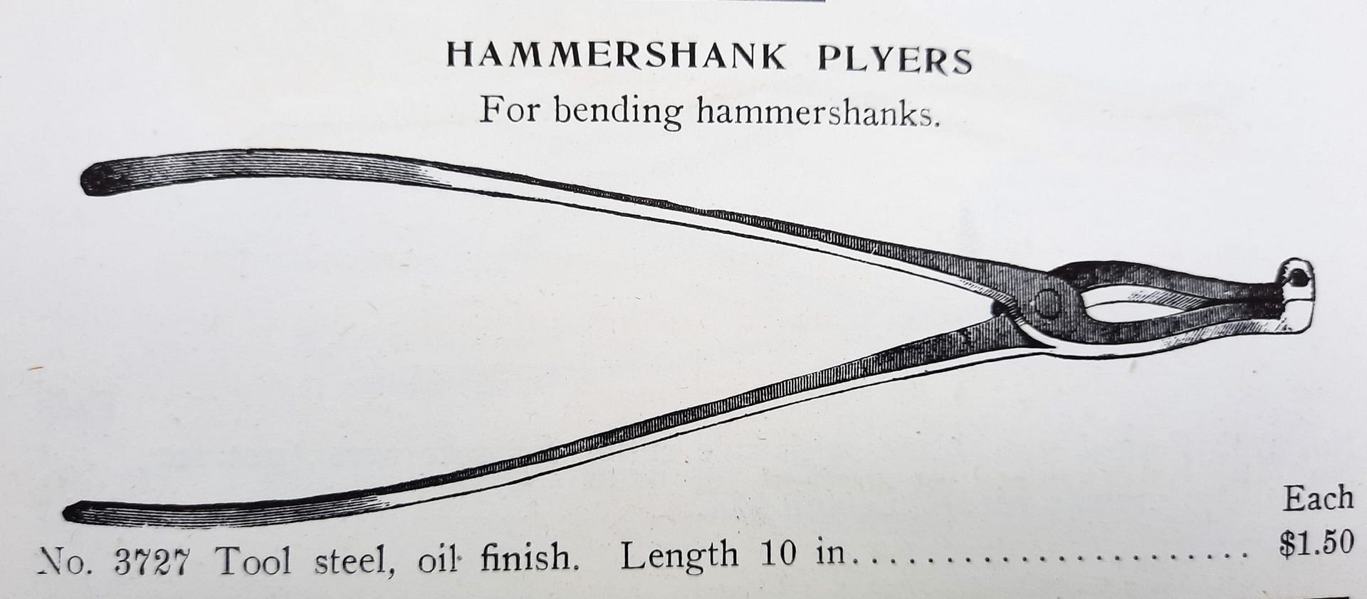 Early type of Hammer Extracting Pliers, which fell into obsolescence by the 1920s. From Otto Higel, Toronto Piano Supply Catalogue, 1906.