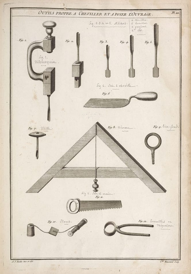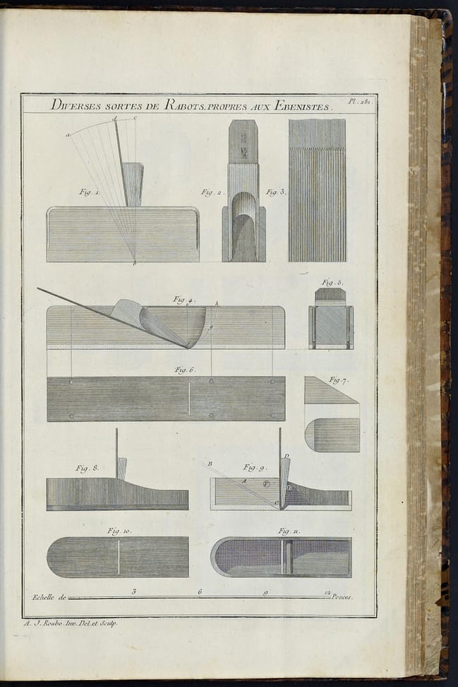 Roubo: L’Art du Menuisier. André Jacob Roubo (1739–1791) an accomplished cabinet maker, wrote this book between 1769 and 1774. The following are selected plates from that book. L’Art du Menuisier vol.3 can be seen here.