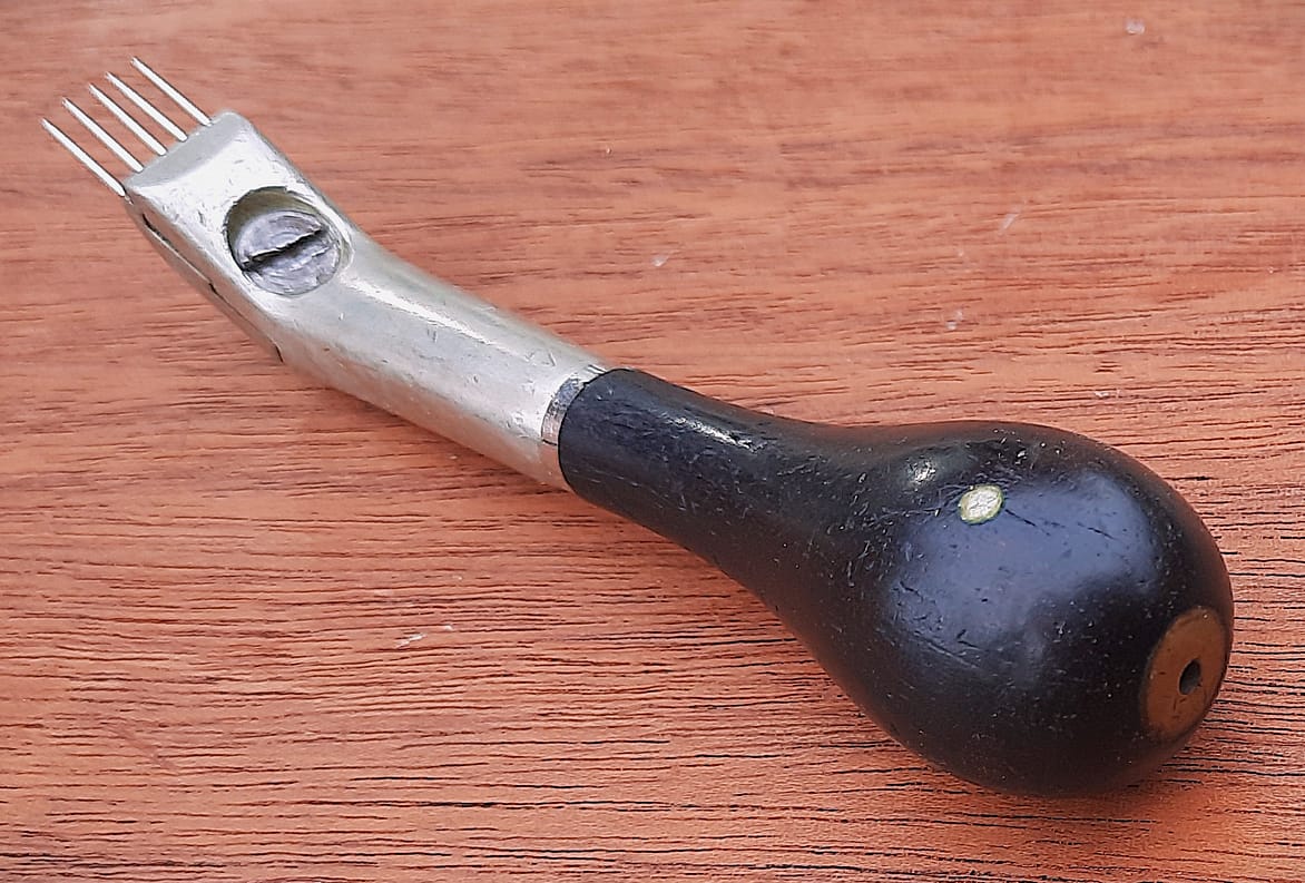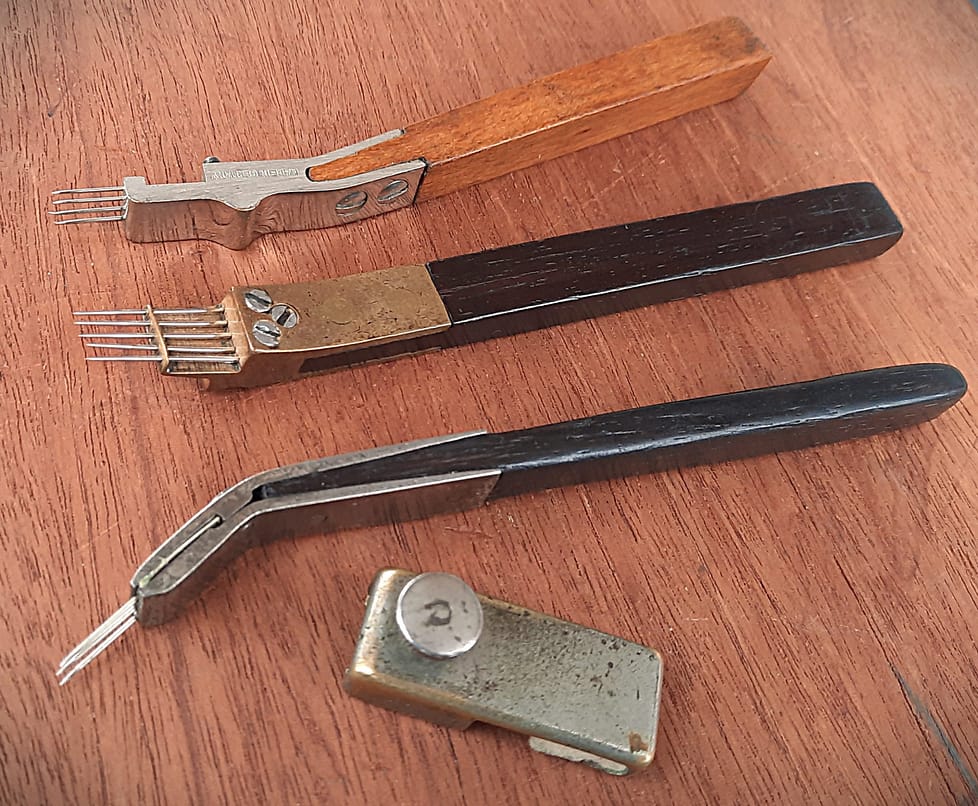 Here are similar voicing tools listed in the Hale 1953 catalog. The 4 individual set screws allow for using slightly different size needles at the same time. With the earlier Lang voicing tool, it was best to use the 2 same size needles under each set screw.