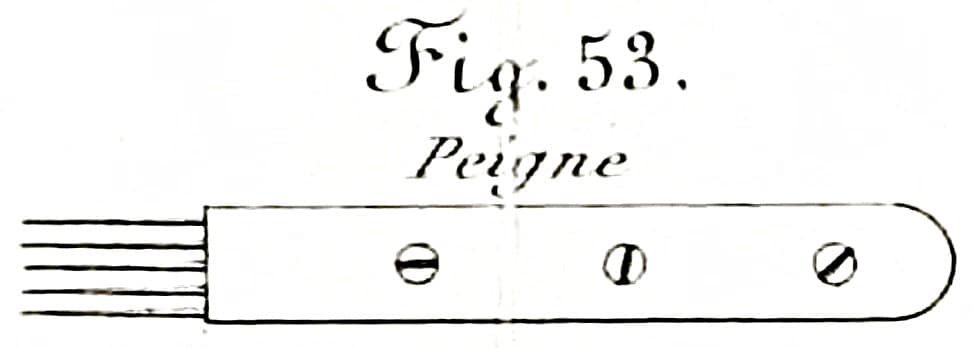 Sievers voicing tool, a type in use during the early 19th century. Illustration from ‘Il Pianoforte; Guida Pratica’ by Giacomo Ferdinando Sievers, published 1868 by Ghio, Napoli.