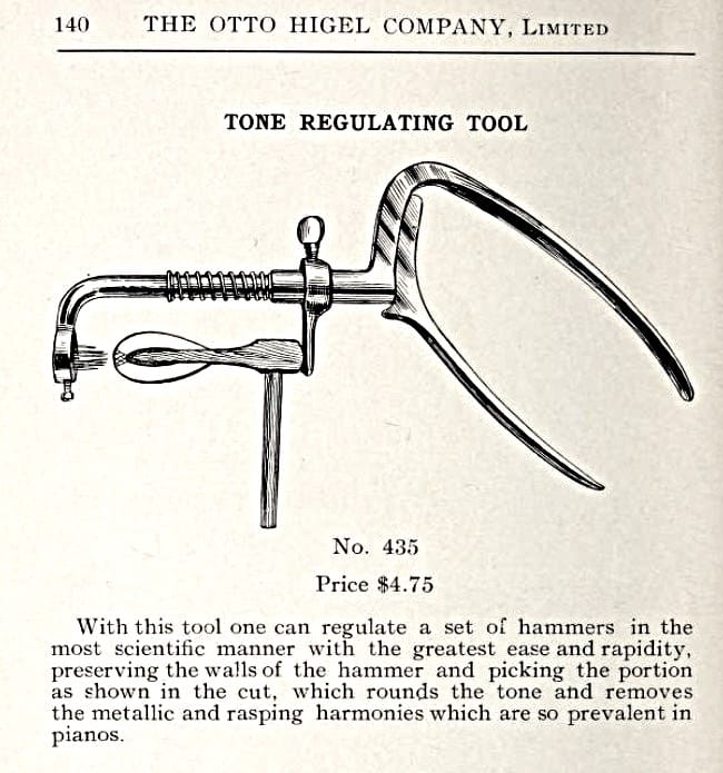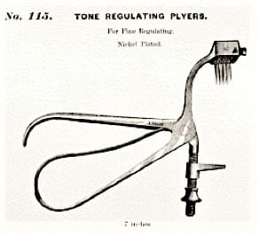 Jahn “Double Duty” Voicing pliers (!) Although I find these voicing pliers interesting, I don’t necessarily condone their use! Incidentally, Jahn and Co., a piano supplier in Germany, makes a a modern version of the voicing pliers